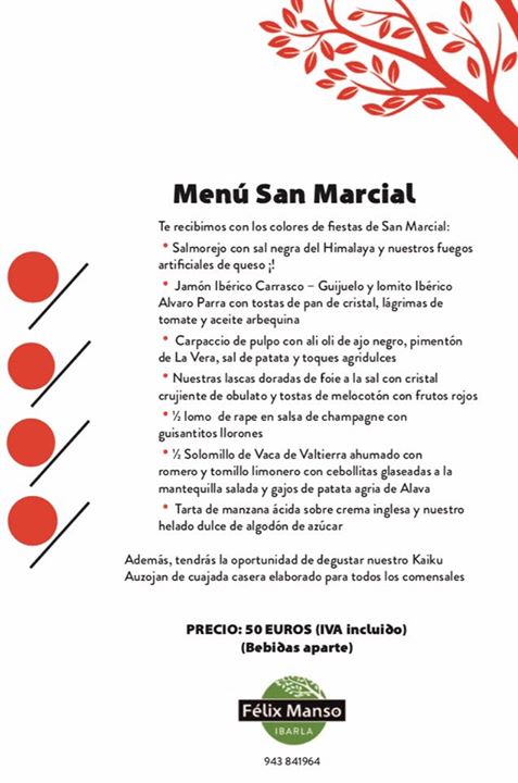Te presentamos el menú que hemos preparado para celebrar los días de San Pedro y San Marcial !!!